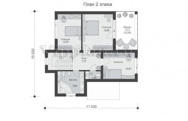 | Размеры дома: | 10.52м×11.42м |